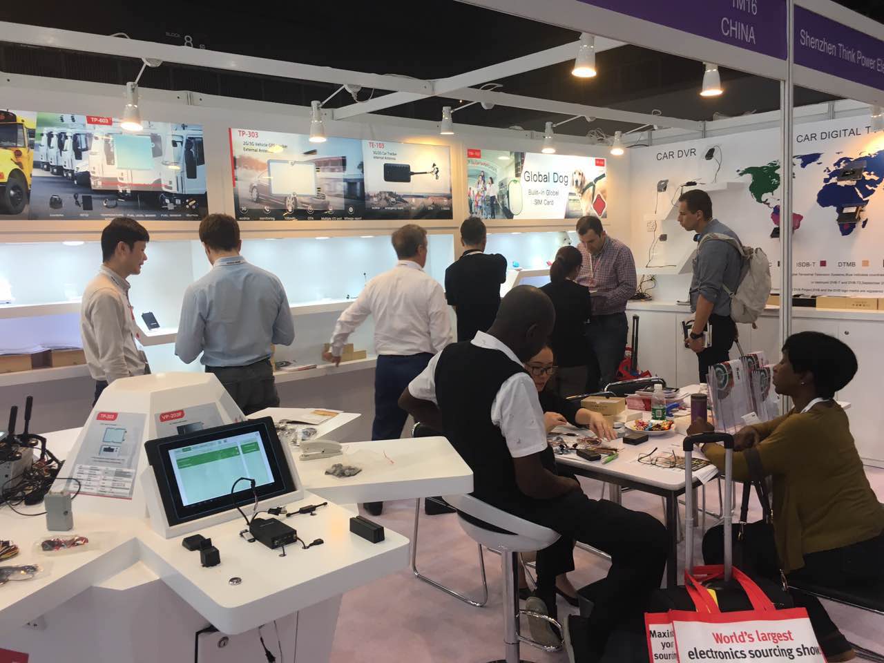 At this exhibition, Think Power mainly launched fleet management tracking equipment TT-100, TP-603, TP-303, vehicle safety anti-theft system TE-103, pet gps tracker TW-102, personal locator and the asset locator. What's more, we also launched the Car digital TV Receiver and car DVR. A full display of IoT telecommunications and automotive electronics solutions.